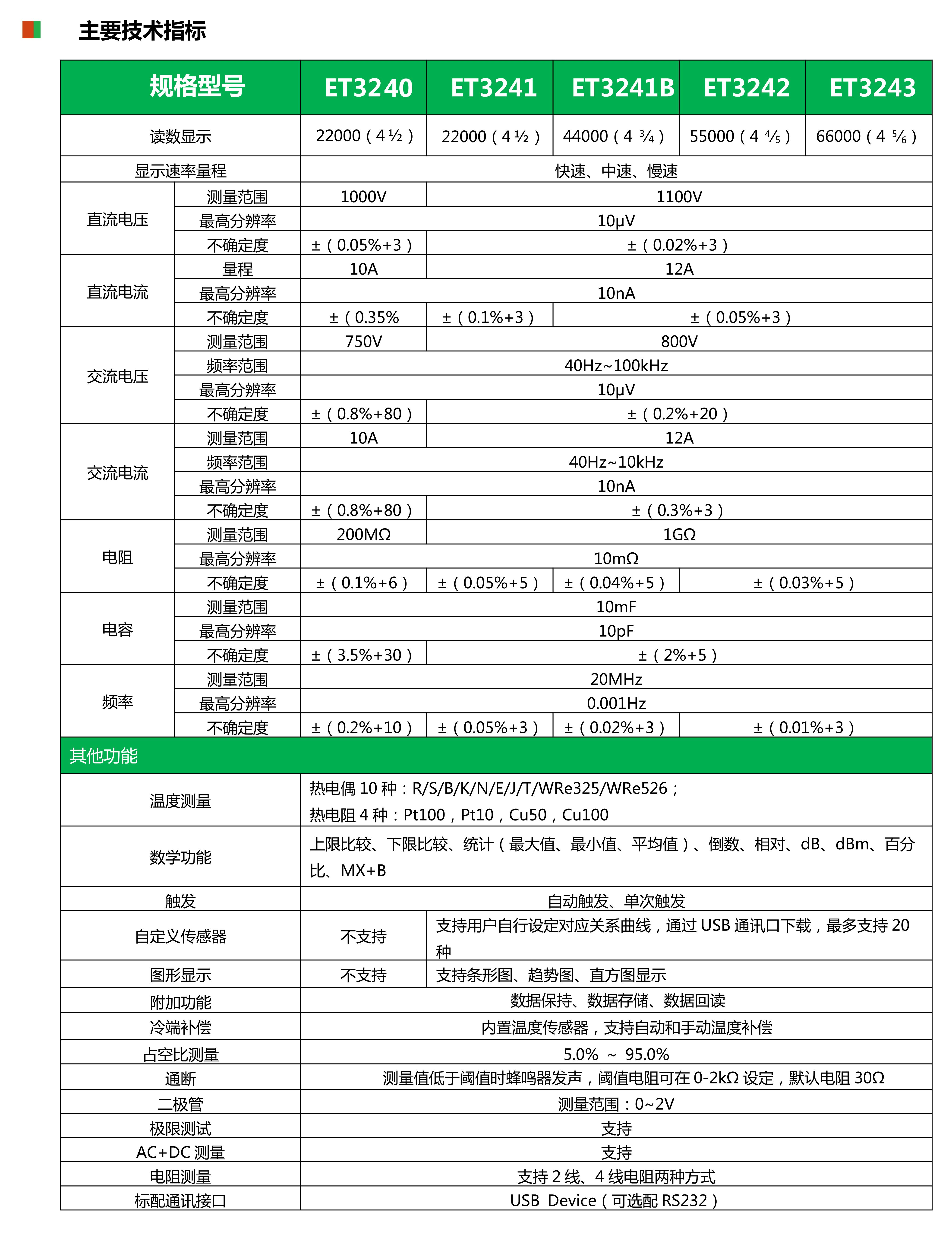 12种基本测量功能:交直流电压、交直流电流、二线/四线电阻、周期、频率、二极管、通断、极限测试、占空比、AC+DC测量;